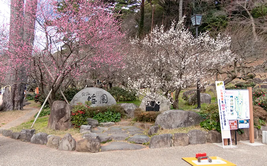 熱海梅園へのアクセスは熱海駅より伊東線で1駅、来宮駅で下車、徒歩10分ほど。