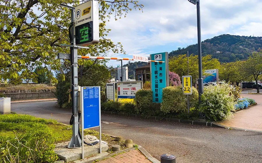 ムーンテラスそばにある熱海市営第1親水公園駐車場は、熱海の海岸線にある4つの市営駐車場の中では東京側から数えて2番目、サンビーチ利用時だけでなく、銀座通り商店街を利用する際にも便利な駐車場です。
