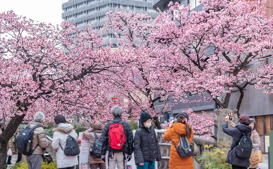 また、長年熱海で愛されるお店が立ち並ぶ川沿いに植樹されているのは日本一の早咲きとして知られる「あたみ桜」。