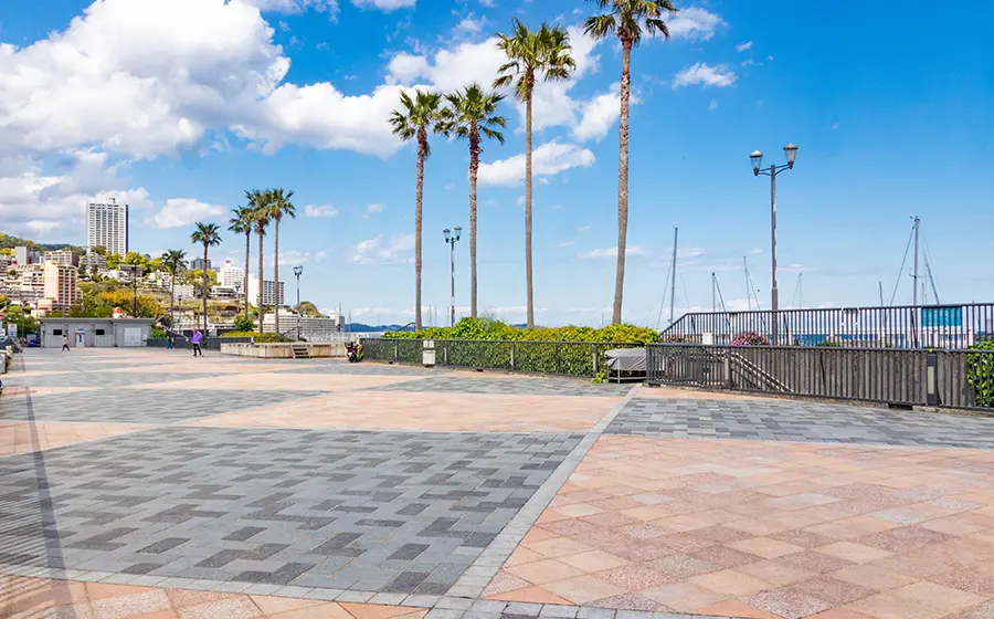 熱海駅から徒歩約15分。サンビーチからは徒歩約3分と海岸線の散歩を楽しまれる方にもオススメのレインボーデッキでは熱海で行われる多くのイベントが開催されます。