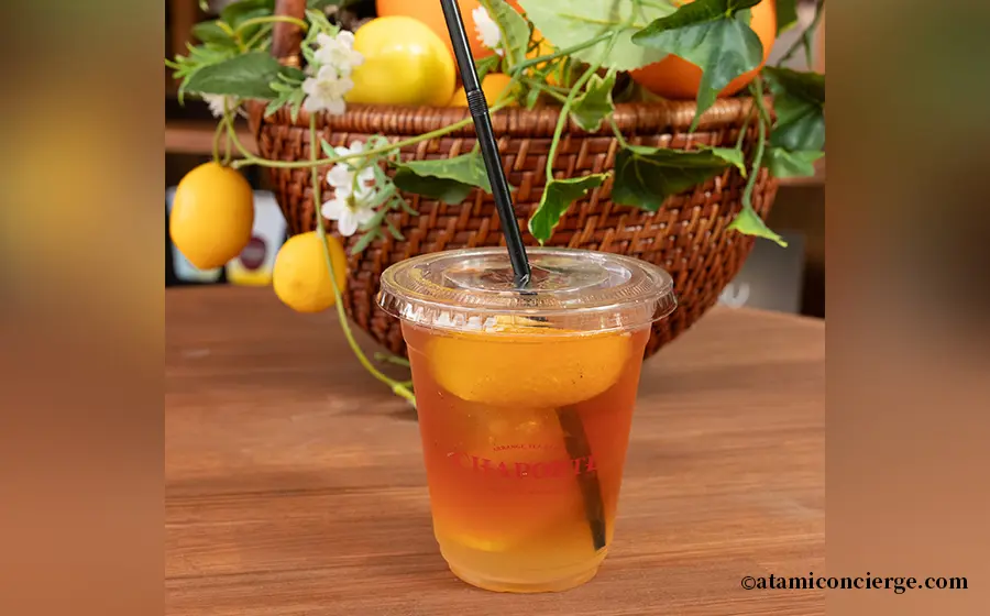 静岡茶といってもただそのままのお茶ではなく、熱海の名産品でもある橙や熱海が発祥とされるレモンなどフルーツとあわせたドリンクをはじめ、豊富な種類があるのでお茶の新しい楽しみ方が見つかりそう。